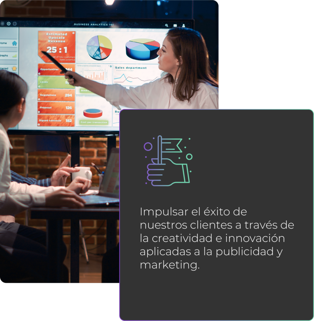 Trabajamos cada día para consolidarnos como referentes en la industria publicitaria y marketing, siendo reconocidos por nuestras campañas que trascienden el panorama publicitario actual. Avanzamos con la mirada firme a ser líderes a nivel nacional y establecer nuestra presencia a nivel internacional.